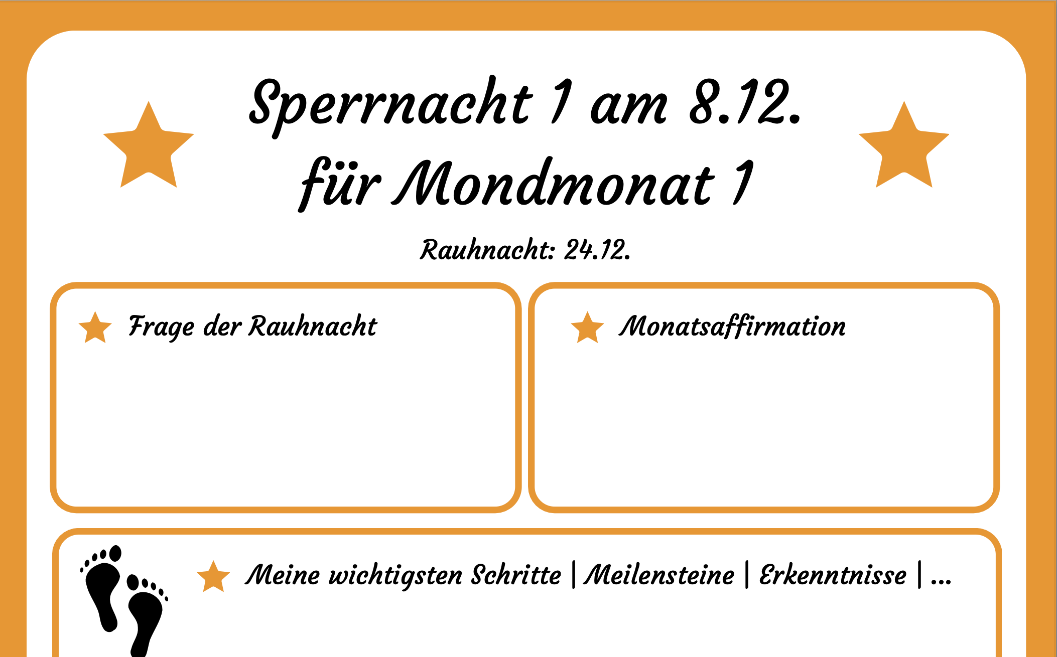 - je eine Seite für jedes der 12 Mondmonate zum Einbringen der Ernte | Essenz;