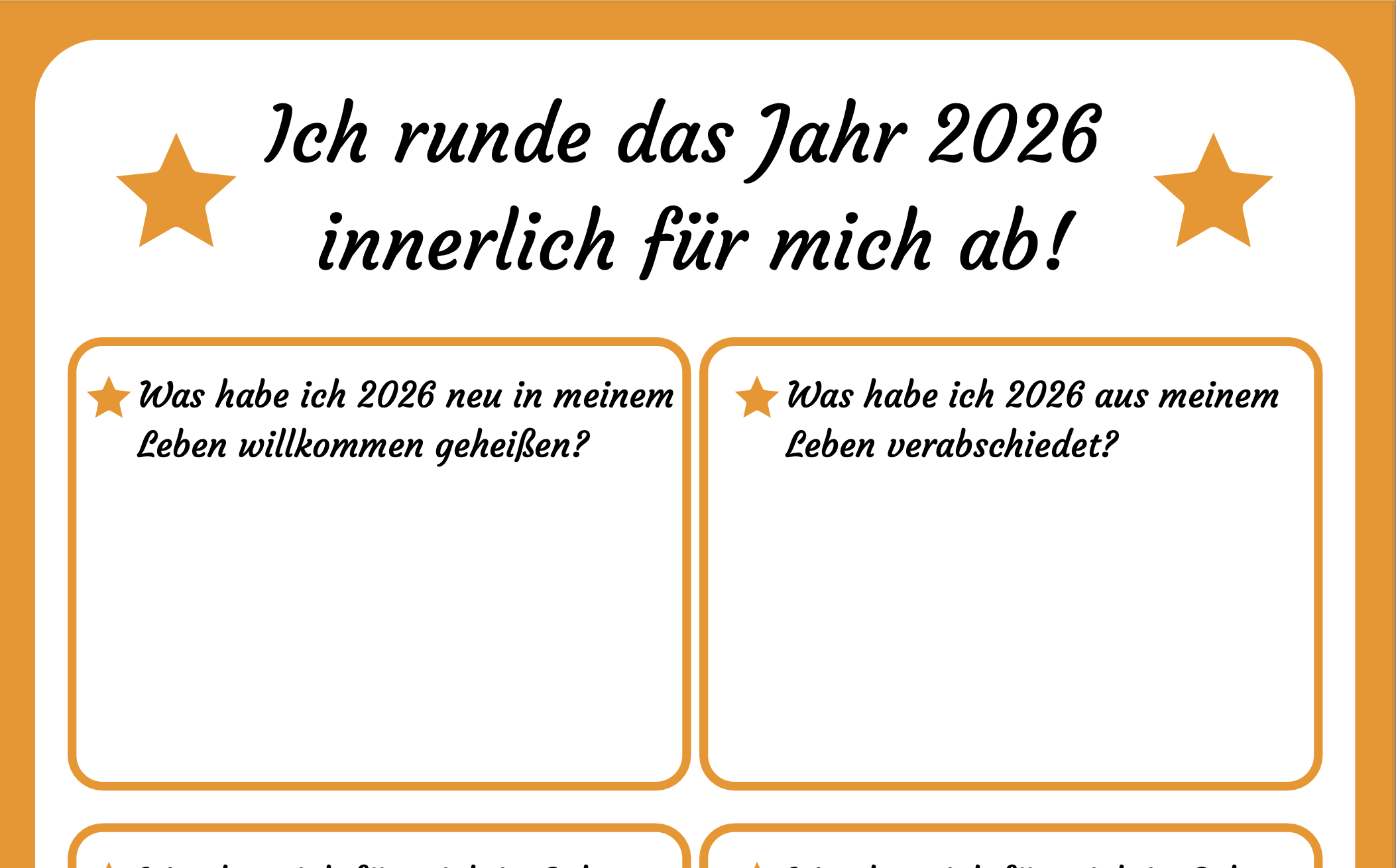 - eine Seite für das Erinnern an dein Jahresmotto 2026;